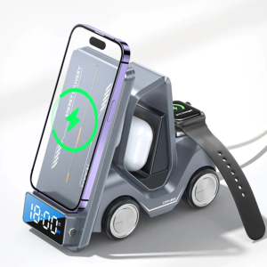 این محصول طراحی بسیار جذاب کامیون دارد؛ امکان شارژ همزمان سه دستگاه از جمله گوشی‌موبایل، هندزفری بلوتوثی و ساعت هوشمند را در اختیار شما قرار می‌دهد؛ ساختار آن را پلاستیک ABS و پلی‌کربنات‌نسوز تشکیل داده و فوق‌العاده مقاوم است. ابعاد آن 18*16.5*8 سانتی‌متر است و وزن آن 280 گرم است. در رنگ‌بندی‌های سفید، خاکستری، نارنجی و زرد به بازار ارائه شده تا بتوانید رنگ مورد علاقه خود را انتخاب کنید. همچنین چهار نوع نور محیطی قابل تنظیم هم برای چراغ عقب آن در نظر گرفته شده تا بتوانید از آن به عنوان چراغ خواب هم استفاده کنید.