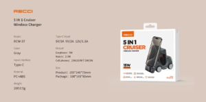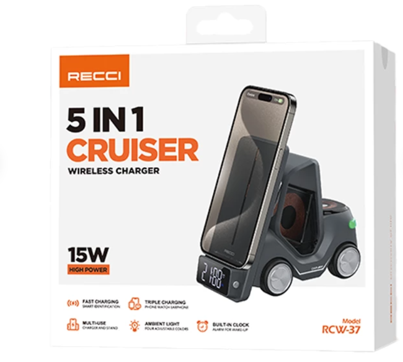 شارژ همزمان سه دستگاه در شارژر بی سیم رسی مدل RCW-37 توان 15 وات