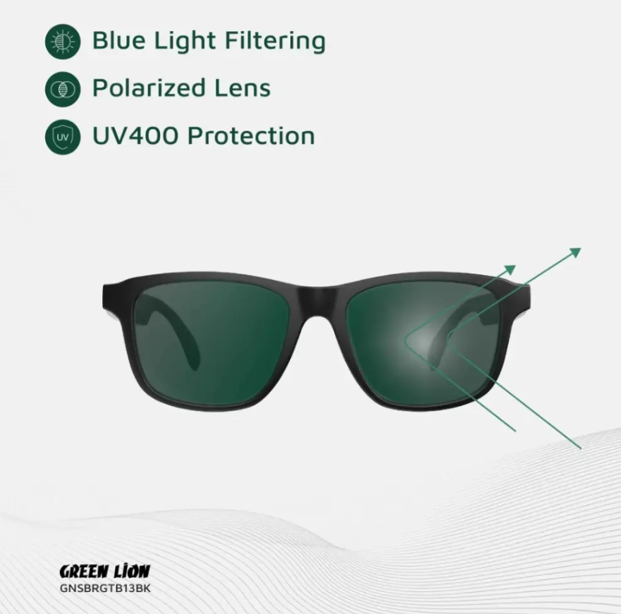 یکی از مهمترین ویژگیهای عینک هوشمند Green Lion GNSDNGLSBK، استفاده از لنزهای پلاریزه UV400 است که میتوانند تا حد زیادی از ورود نور مضر ماورای بنفش (UV) و نور آبی (Blue Light) جلوگیری کنند. این ویژگی بهویژه برای افرادی که ساعات طولانی با صفحه نمایشهای دیجیتالی مانند گوشی، لپتاپ و تبلت کار میکنند، بسیار مهم است. فیلتر نور آبی به کاهش خستگی و فشار چشم کمک کرده و سلامت بینایی را در طولانیمدت حفظ میکند.