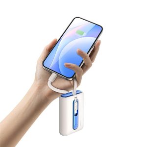 این پاوربانک دارای کابل لایتنینگ و تایپ سی متصل به دنه است که شما را از حمل کابل جداگانه بی نیاز میکند .